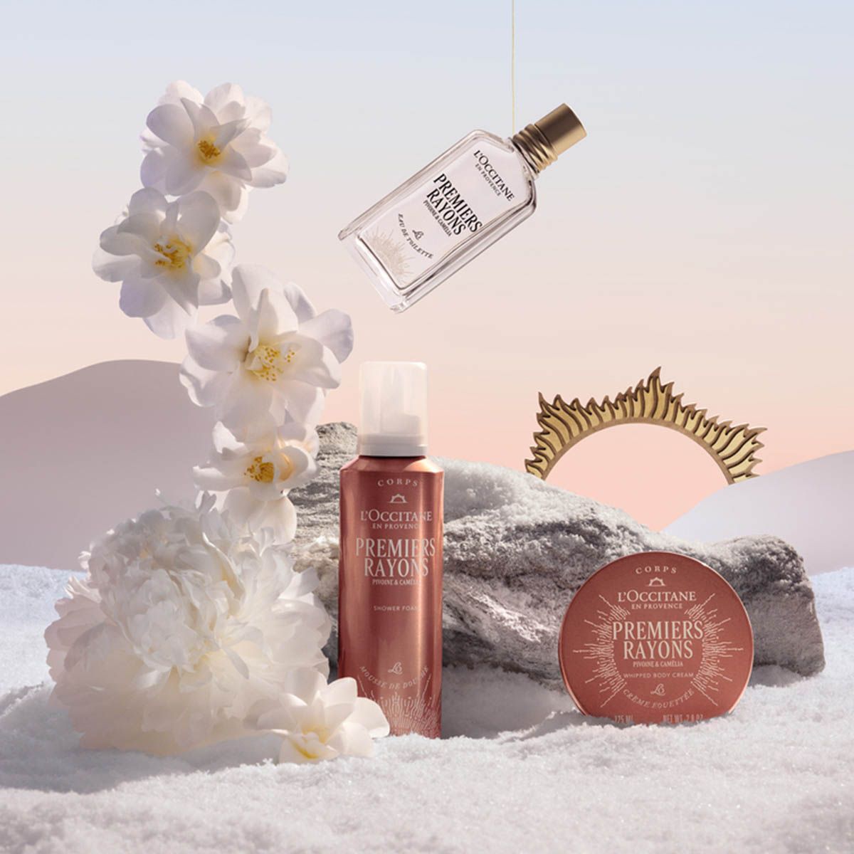 Pripremite se da zablistate: dodajte prstohvat razigranosti, usudite se pretjerivati, očekujte neočekivano i, najvažnije, ne zaboravite na velikodušnu dozu veselja. Ove kolekcije su posveta blistavoj svjetlosti i živahnom pulsu Provanse. BLAGDANSKE KOLEKCIJE U OGRANIČENOM IZDANJU - Ovogodišnja blagdanska ponuda hvata esenciju provansalske svjetlosti u tri jedinstvene kolekcije, od kojih svaka slavi poseban dio zimskog dana – od praskozorja do svečane noći. PREMIERS RAYONS (Prve zrake) Svjetlost zore donosi cvjetno-mošusnu nježnu svježinu jutarnje rose. Prva zraka iskrene ružičaste svjetlosti probija se kroz maglicu, a umirujući cvjetni miris nježno budi osjetila. Note božura i kamelije prepliću se sa suptilnom notom kruške. Ova čulna kolekcija dostupna je kao toaletna voda, pjena za tuširanje i hranjiva kremasta krema za tijelo.
