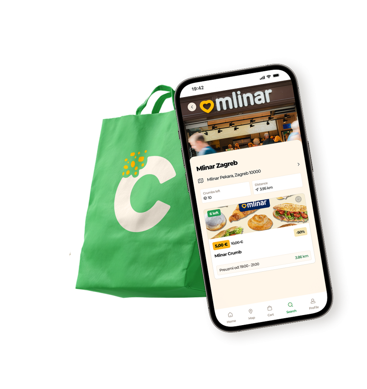Ako voliš dobru hranu i želiš osjećati da sudjeluješ u pozitivnoj promjeni, dovoljno je otvoriti Crumbs, odabrati Mlinarovu lokaciju i spasiti svoj prvi paket iznenađenja. Crumbs aplikacija dostupna je za preuzimanje na iOS i Android uređajima, a broj partnera i lokacija na kojima se mogu spasiti paketi hrane iz dana u dan raste.