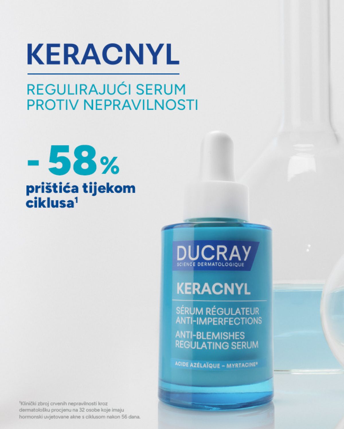 Ducray Keracnyl regulirajući serum protiv nepravilnosti razvijen je kao dermokozmetičko rješenje za njegu kože u odrasloj dobi. Posebno je prilagođen koži sklonoj tzv. “adult acne”, odnosno nepravilnostima koje se pojačavaju netom prije, tijekom i nakon menstrualnog ciklusa, dok je pogodan i za kožu čije stanje mogu pogoršati svakodnevni čimbenici poput stresa i neuravnoteženog načina života.