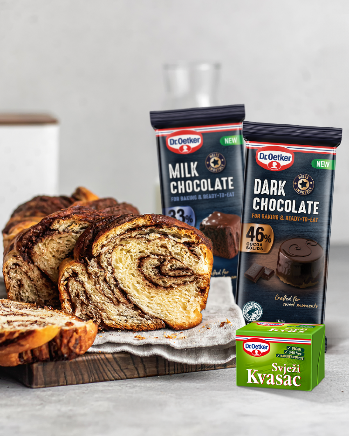 Posebnu čar domaćem pečenju daje spoj svježeg kvasca i kvalitetne čokolade. Taj “power couple” već generacijama osvaja nepca, bilo kroz punjene krafne, čokoladne buhtle, brioche s komadićima kakaa ili topli kruh s otopljenom čokoladom. Dr. Oetker u svojoj ponudi nudi mliječnu i tamnu čokoladu za kuhanje, koje se savršeno stapaju s mekanim tijestom i stvaraju uravnotežen spoj slatkoće, arome i teksture.