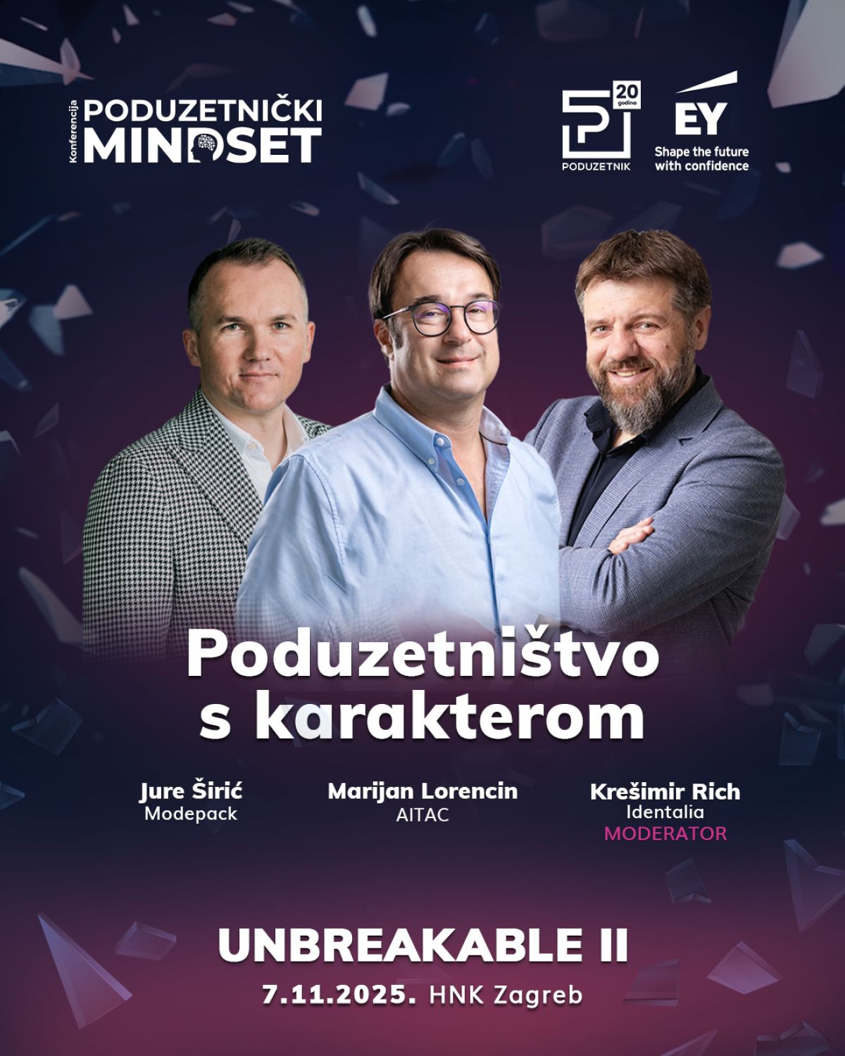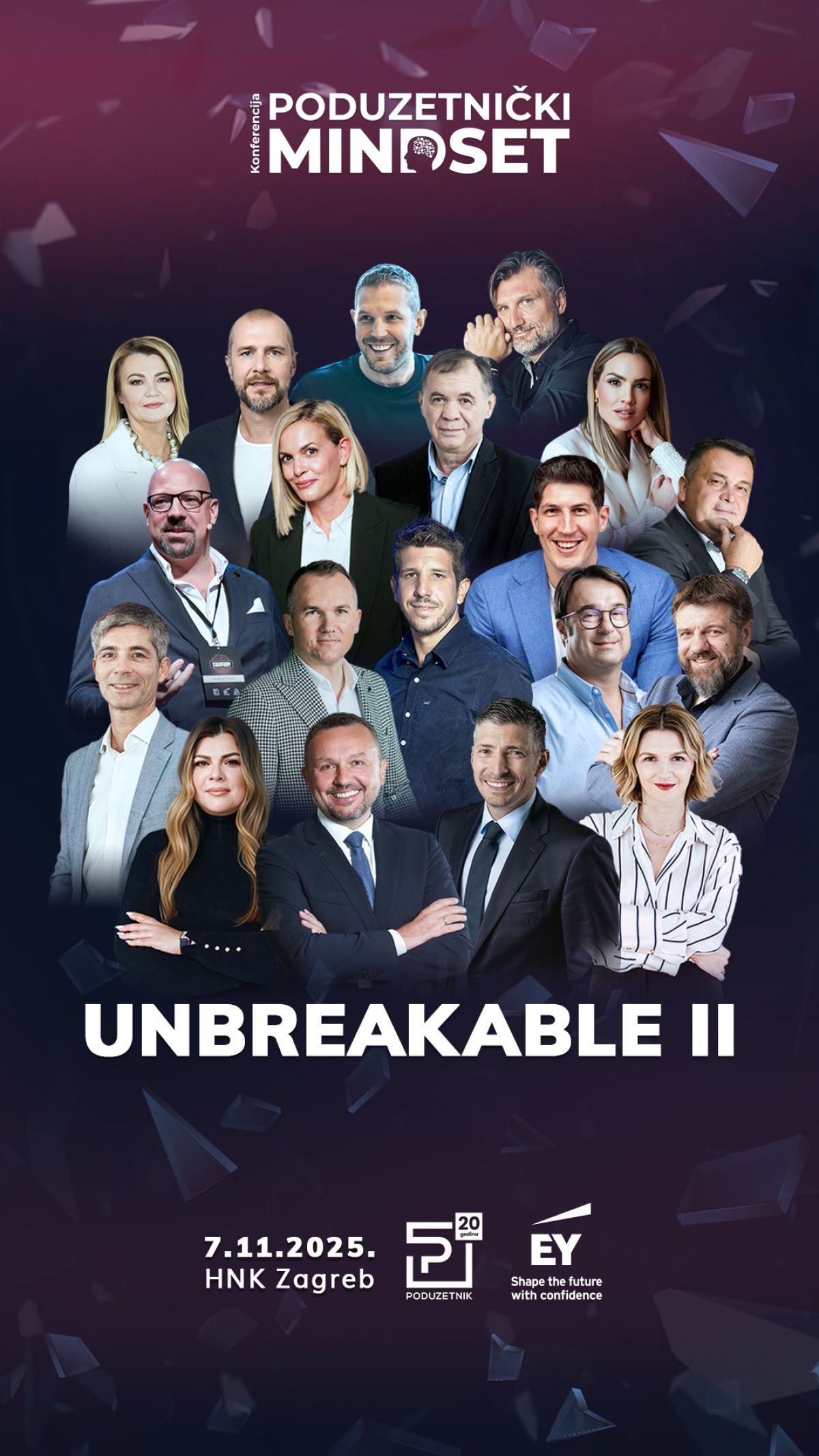 U vremenu kada svijet traži nove izvore snage, postoji jedna pozornica na kojoj se hrabrost, otpornost i vizija susreću – ona poduzetnička. Sedma konferencija Poduzetnički mindset, pod snažnim geslom UNBREAKABLE, okuplja sve one koji vjeruju da se uspjeh ne rađa samo iz upornosti, nego i iz najtežih trenutaka, iz onih padova nakon kojih, unatoč svemu, odlučimo ustati i ići dalje. U petak, 7. studenoga 2025., u Hrvatskom narodnom kazalištu u Zagrebu, okupit će se ljudi s nevjerojatnim životnim pričama, liderice i lideri koji mijenjaju igru, oni koji dokazuju da i pod svjetlima reflektora ostaju autentični, iskreni i istinski lideri.