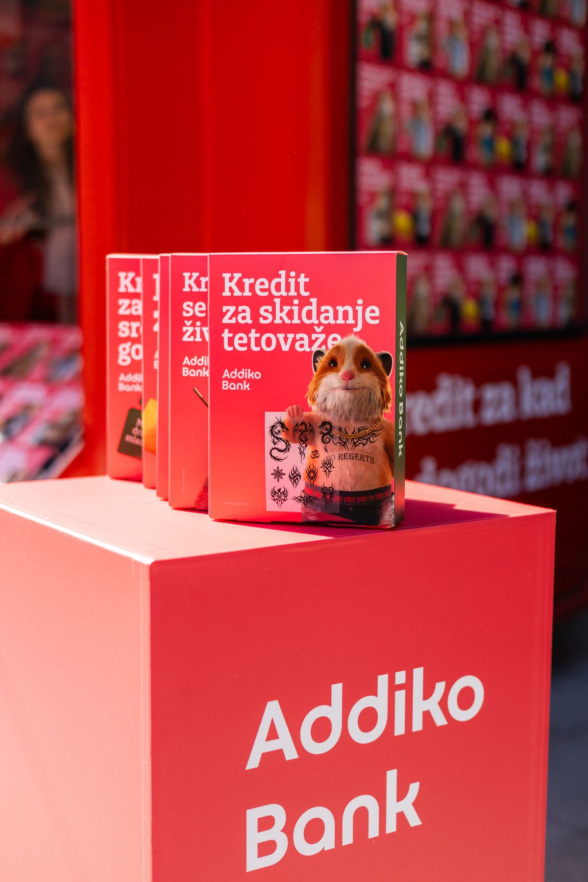U poslovnicama Addiko banke osvanule su i promotivne kutije sa šaljivim nazivima kredita, a svaka od njih sadrži i mali, simboličan poklon koji dodatno naglašava humor kampanje.