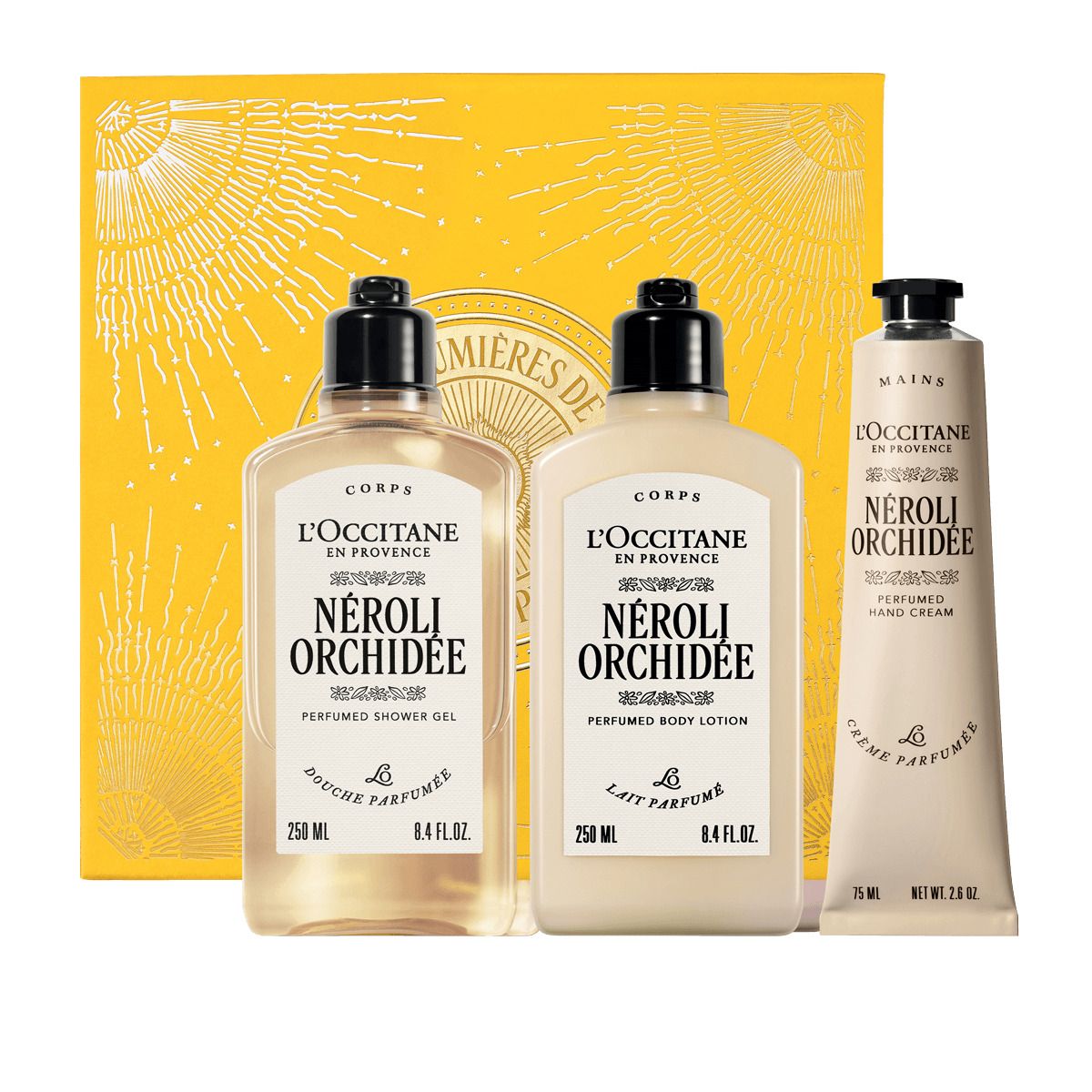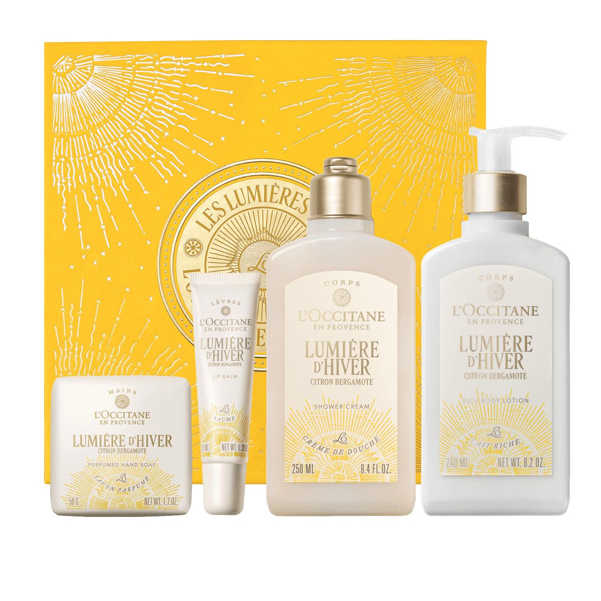 U prepoznatljivim žutim poklon-kutijama nalaze se najtraženiji L'Occitane proizvodi poput bademovog ulja i mlijeka za tijelo, kultnog karite maslaca za suhu kožu, slavnih krema za ruke te mirisnih rituala s notama trešnje, ruže, lavande i drugih.