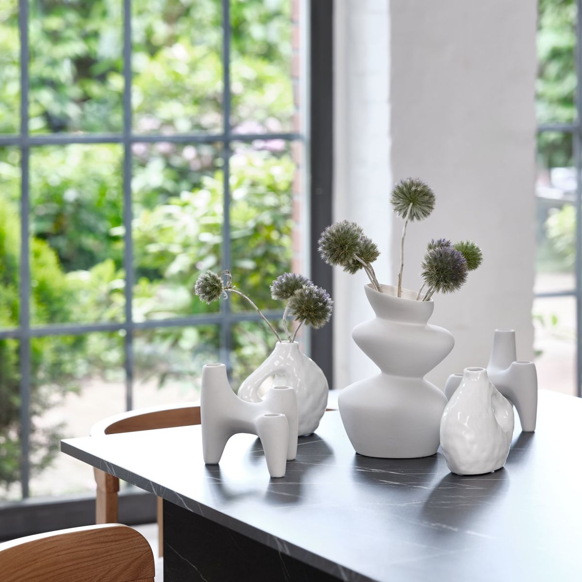 - Lampe, vaze i dekorativni detalji u svijetlim, mat površinama - idealni za interijere koji vole igru svjetla i sjene.