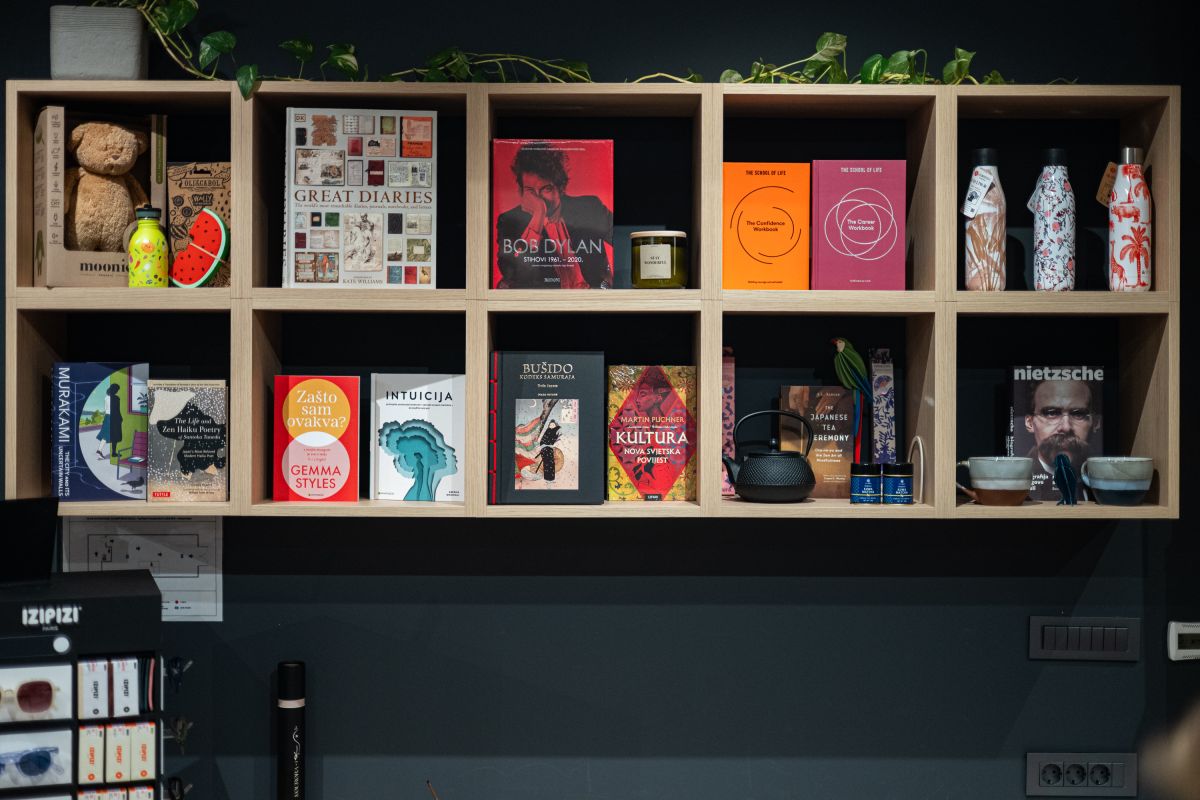 Nova knjižara donosi pažljivo kuriran izbor knjiga svih domaćih i probranih stranih izdavača. Na policama se mogu pronaći suvremena i klasična književnost, poezija, publicistika, popularna psihologija, osobni razvoj i wellbeing, raskošne kuharice te bogat izbor naslova na engleskom jeziku.
